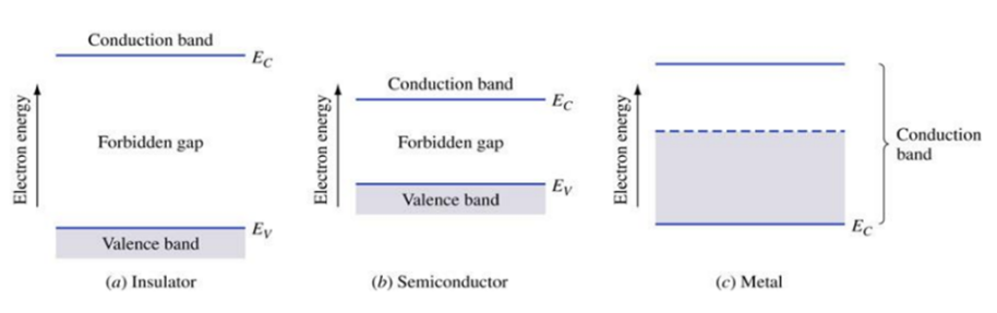원자가 단독으로 존재할 때, 하나의 양자화된 수준의 에너지 수준이 있다. 원자들이 서로 가까이 접근할 때, 그들은 상호 작용하고 결합한다. 가장 바깥쪽의 전자들은 서로 공유되고 전자 궤도 사이의 간격은 좁아진다. 에너지 준위는 반연속적으로 확산되어 에너지 대역과 억제 영역을 형성한다. 전도 밴드는 전자가 거의 비어있는 밴드의 맨 아래에 있는 밴드이다. 전자는 거의 비어있지만, 약간의 전자를 가질 수 있다. 원자가 밴드는 거의 전자로 채워진 밴드의 맨 위에 있는 밴드입니다. 그것은 전자로 가득 차 있지만, 구멍이 있을 수 있습니다. 원자가대의 전자가 높은 에너지를 받으면 전도대로 이동한다.